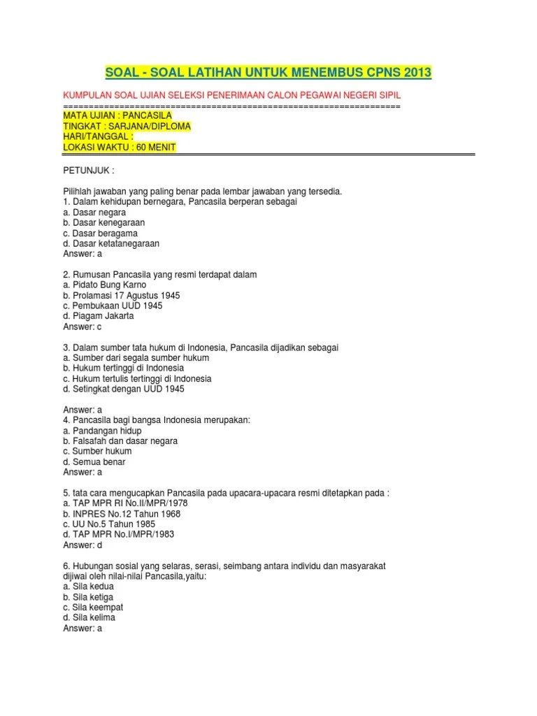 Contoh Soal Cpns Pancasila Dan Kunci Jawaban - Contoh Soal Cpns Twk Tema Pancasila Lengkap Dengan Jawaban Gadget Idn : Latihan soal tes cpns soal cpns pancasila + pembahasan 1.. Tes wawasan kebangsaan (twk) adalah salah satu jenis tes yang ada pada seleksi kompetensi dasar pada ujian masuk cpns. Soal dan pembahasan pancasila twk cpns 2021yuk bahas soal twk 2021. Berikut ini kami sertahan latihan soal dan try out cpns 2021 yang sudah tipe hots. Software disediakan berbagai materi tes cpns berikut dengan kunci jawaban dan pembahasannya. Twk adalah tes yang akan menguji seberapa dalam .
